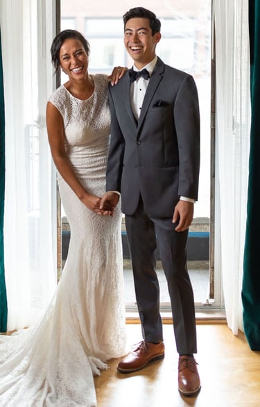 Bride and Groom come in together to plan your whole wedding parties Suiting looks. Sit down with a Stylist to help you register your wedding and go over every detail. Look through Swatch Books to see color samples so you can pick your looks with confidence.